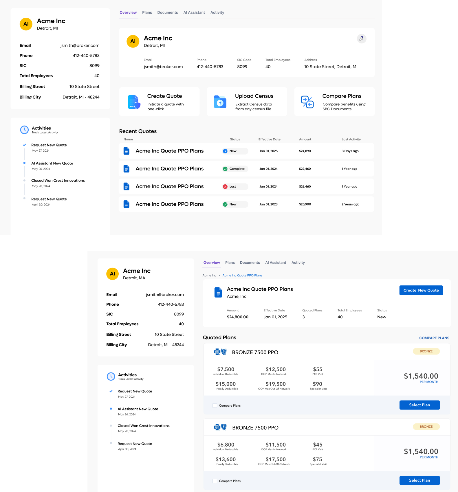BrokerFlow Platform Features: Streamline your workflow with AI-driven quotes, seamless enrollments, client management and compliance tools.